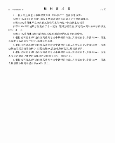 [00000059]一种分离盐湖老卤中镁锂的方法