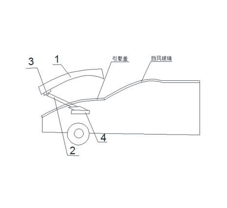 其特征在于:包括设置在引擎盖凹槽内的保护板,所述保护板的上表面与引擎盖的外形相同,保护板的下表面与前挡风玻璃的形状相同,所述保护板下表面设有将保护板翻转使下表面贴合在前挡风板上的自动翻转架,所述自动翻转架的另一端与电动伸缩杆连接,所述自动翻转架通过电路与电机连接。