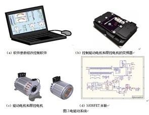 如图2(a)所示,为软件参数修改控制软件,该软件的功能可以对已经烧写到CPU中的软件参数进行修改,包括叉车最高速度、坡顶停止时间等等;如图2(b)所示,为控制驱动电机和泵控电机的变频器,其功能是将来自蓄电池的母线电压48V逆变成交流电(电压和频率可控)对驱动电机和泵控电机进行控制,控制叉车前进和提升、下降货物,同时也可以根据电机的温度和电流大小限制电机功率的输出;如图2(c)所示,分别为驱动电机和泵控电机,其为三相异步电机,带有速度输出信号,同时其绕组上埋有温度传感器对电机的温度进行检测,但温度太高时报警等;如图2(d)所示为变频器内部的功率模块,其主要由MOSFET并联组成,根据电机功率的大小可以改变并联的MOSFET的只数。
