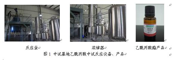 目前在厦门大学生物质能源产业化基地已建成一套以生物质、糖为原料制备乙酰丙酸乙酯中试系统。