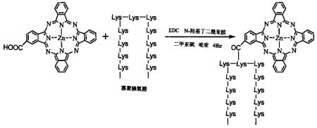 一种广谱、低毒性的酞菁类杀菌剂,即2-单羧基取代酞菁锌-寡聚赖氨酸偶合物及其制备方法和用途。该杀菌剂是以醋酸锌,邻苯二甲酸酐和偏苯三甲酸酐为起始原料,经固相合成、水解、层析柱分离而得到较纯的2-单羧基取代酞菁锌,然后将2-单羧基取代酞菁锌与寡聚赖氨酸偶合得到最终产物。这种新型的杀菌剂具有多种用途,能杀死不同种类的细菌,具有一定的广谱性。另一方面,该杀菌剂含有能与细菌表面特异性结合的标记物质,可达到特异性杀死细菌而不伤及正常细胞的低毒性的目的。研究发现,该药物在很小的浓度和光剂量下对牙周病的主要致病菌牙龈卟啉菌的杀伤率高于97%,但同时对人牙周膜细胞的影响很小,因此可作为治疗牙周病的有效药物。