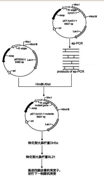本发明涉及一种耐高温高碱木聚糖酶及其基因、工程菌和制备方法,其技术方案是利用易错PCR和定点突变技术对来源于坎皮纳斯类芽孢杆菌的木聚糖酶基因 XynG1-1进行耐高温和高碱的定向分子改造,得到耐高温高碱的木聚糖酶突变基因XynG1-1B43CC16,并利用巨大芽孢杆菌表达系统,分泌表达 耐高温高碱木聚糖酶的方法。本发明解决了现有木聚糖酶耐高温与耐碱性无法同时兼顾,造成其在造纸工业中应用受限的问题,满足了木聚糖酶在高温和高碱性环境 下进行生物制浆和生物漂白的要求,可提高纸浆白度和得率,减少造纸工业中化学试剂的用量,降低环境污染,促进造纸工业的清洁生产。