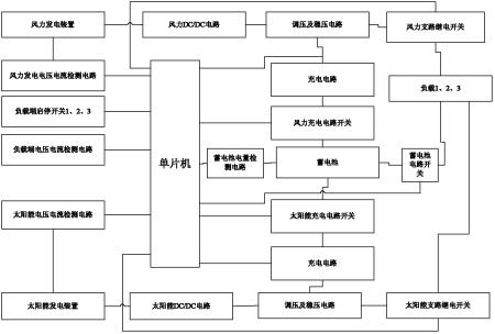 本发明涉及一种智能综合发电系统,其主要技术特点是:单片机分别通过I/O接口与太阳能供电支路、风力供电支路、蓄电池供电支路、负载端电压电流检测电路及负载端启停开关相连接,太阳能供电支路、风力供电支路及蓄电池供电支路输出端通过相应的继电开关电路与负载相连接,太阳能供电支路、风力供电支路的输出端分别连接到蓄电池支路上为蓄电池充电。本发明通过实时检测各个供电支路的电能状态来切换不同的供电形式,完成各个供电装置与负载的协调控制,同时,还可将太阳能及风能发电装置为蓄电池充电,保证了系统稳定工作,延长了供电时间,具有工作稳定、重量轻、高效节能、负载效应好、动态性能好、工作可靠及输出稳定等特点。