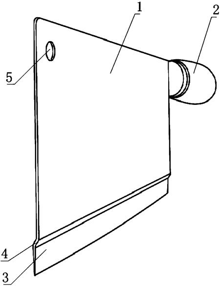 本实用新型涉及一种安全刀具,包括手柄、刀面以及刀刃,刀面下端制有刀刃,刀面上部后端固装有手柄,所述刀刃 上端与刀面之间制有向刀面右侧倾斜的弯折,折弯使刀刃与刀面之间留有安全距离。本实用新型的结构简单、设计合理、使用方便,改进后会让人使用起来更加安 全,方便,并且省却了使用中的烦恼,如粘刀等。