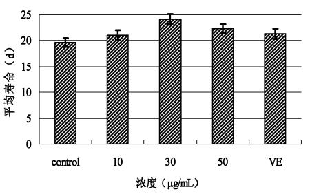 本发明涉及一种洋葱提取物的制备方法及在延长线虫寿命中的应用,制备方法为提取物制备,经多次提取、纯化、浓缩,得到洋葱提取物。本发明制备的洋葱提取物对延长线虫寿命效果明显,发现30μg/mL洋葱提取物(含槲皮素80%以上)能显著延长秀丽线虫的寿命和最大寿命,优于维生素E的作用效果,能显著提高线虫SOD、CAT表达量和热激实验的存活率。