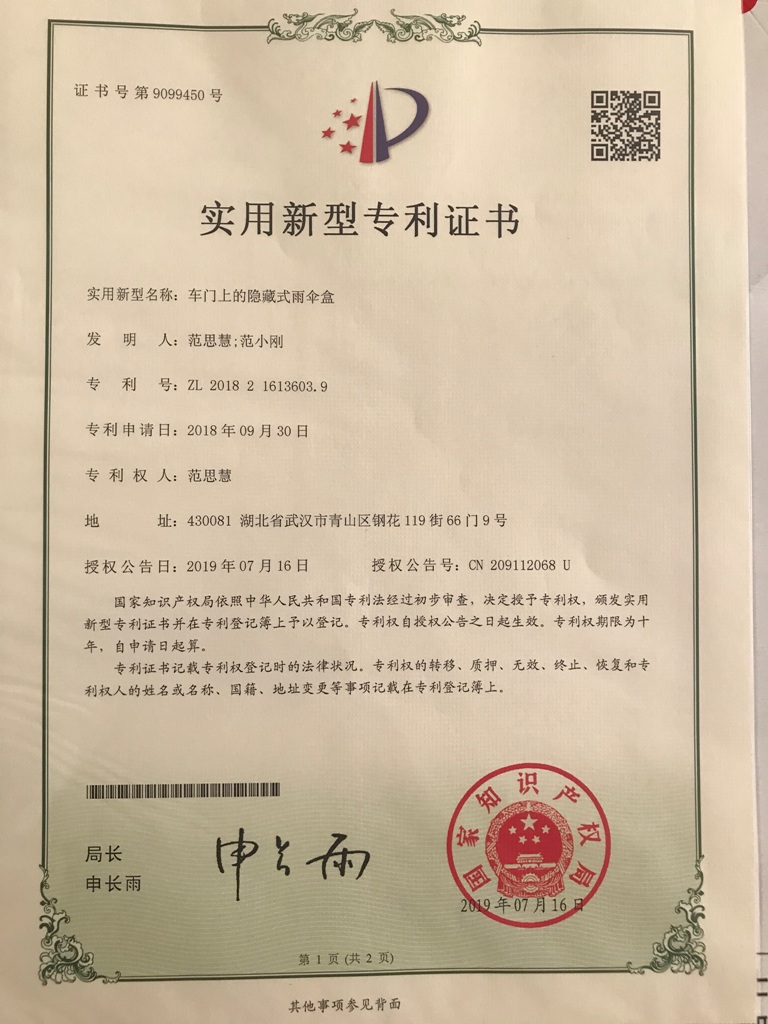 车门上的隐藏式雨伞盒采用工程塑料成型,安装方便,制造成本低。适合车企规模化生产,能提升用车舒适性。