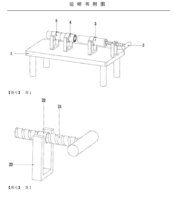 本发明公开了一种开甘蔗篾装置,所述的开甘蔗篾装置包括底座、螺旋推杆、竹节固定套、开竹器、开篾器;所述底座为长方形板块,板块底部四角设有四个圆柱形支撑脚;所述螺旋推杆由轴套、螺杆、轴套支座构成,安装在所述底座后端;所述竹节固定器由竹节固定套、轴套、轴套支座构成,后端与所述螺旋推杆前端连接;所述开竹器安装在所述竹节固定器前端,由轴套、开竹器、轴套支座构成,前端与所述开篾器连接;所述开篾器安装在所述开竹器前端,由轴套、开篾器、轴套支座构成,后端与所述开竹器连接。本发明结构简单,设计科学合理,代替了传统人工手动开甘蔗篾,解决了存在的效率低、劳动强度大、容易弄伤手掌的问题。