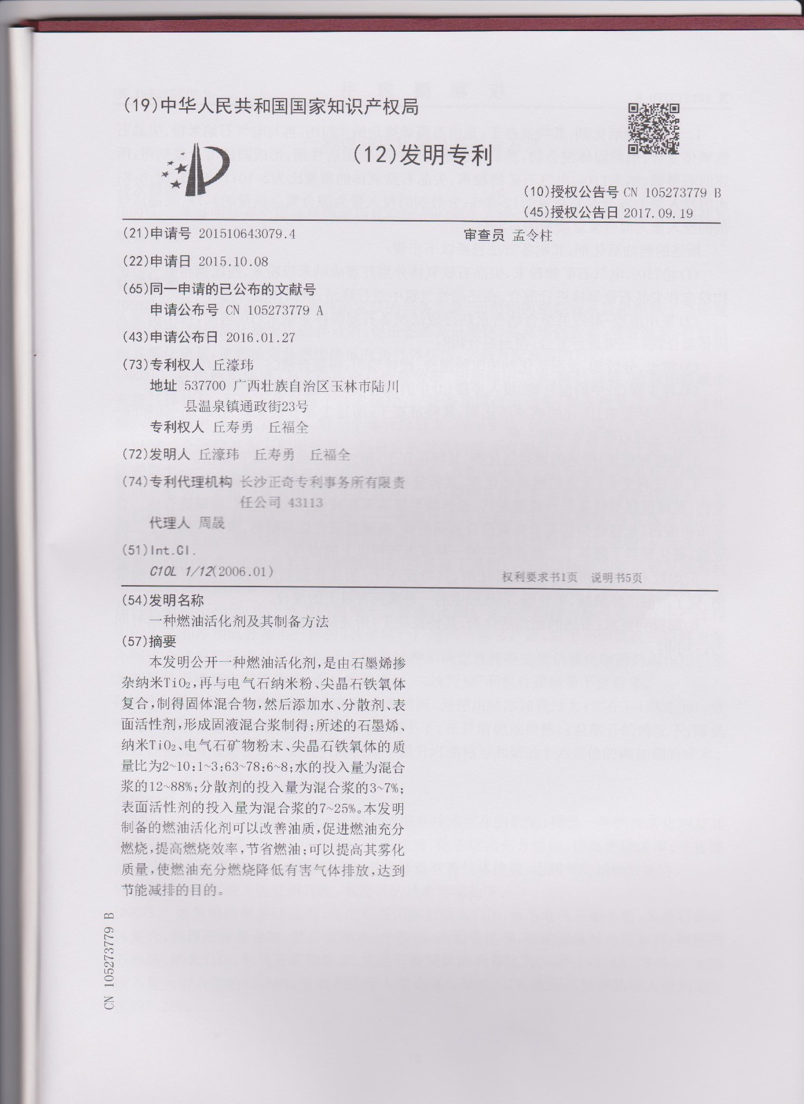 项目详细用途:本项目产品广泛应用于添加到汽油、煤油、柴油等已知液体燃料中,用于提高燃料的燃烧效率,减少有害气体排放。